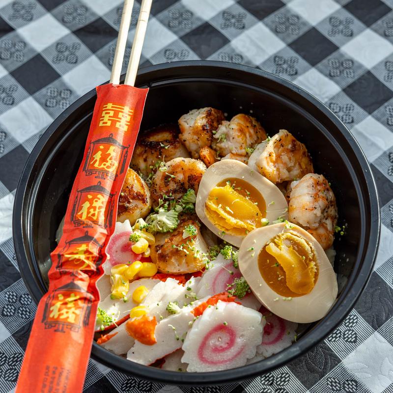 Sushi is a traditional Japanese dish consisting of vinegared rice, usually seasoned with sugar and salt, topped with a variety of ingredients like raw or cooked seafood, vegetables, and sometimes egg, all served cold and often wrapped in seaweed (nori)